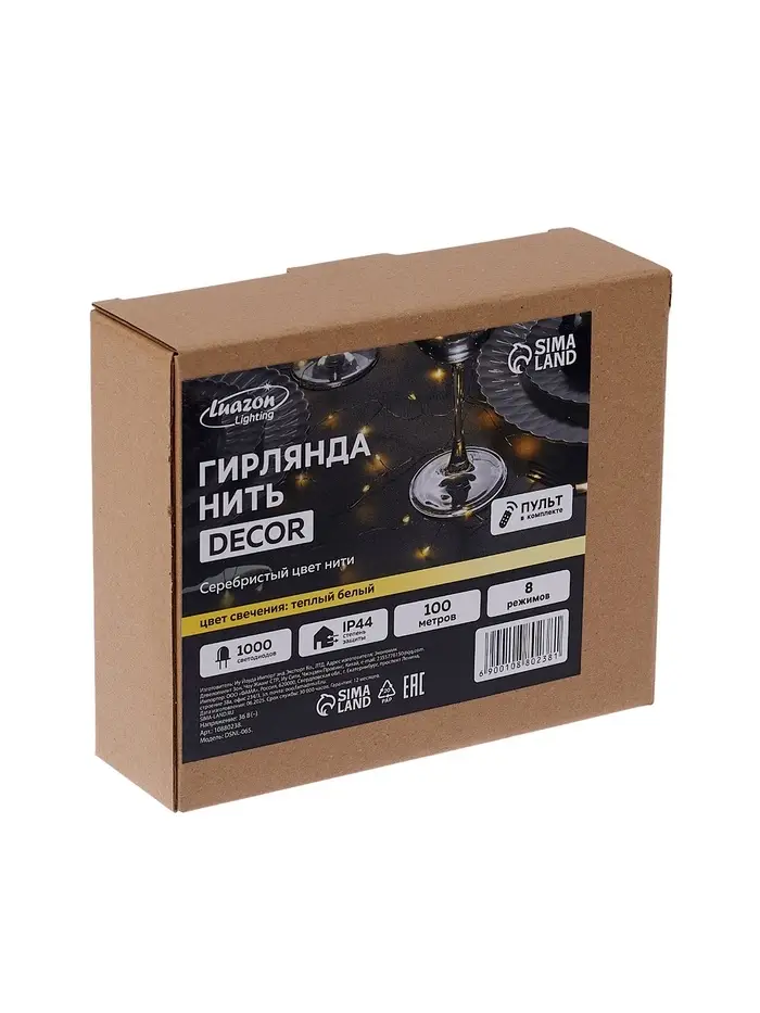 Гирлянда «Нить» 100 м роса, IP44, серебристая нить, 1000 LED, пульт, 36 В, свечение тёплое белое