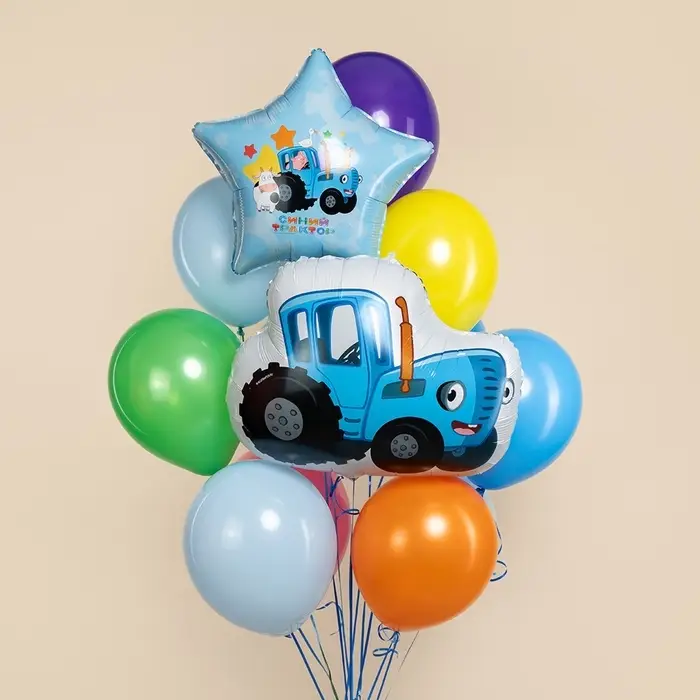 Воздушный шар фольгированный 19" звезда "Синий трактор, С Днем Рождения!" в инд.уп