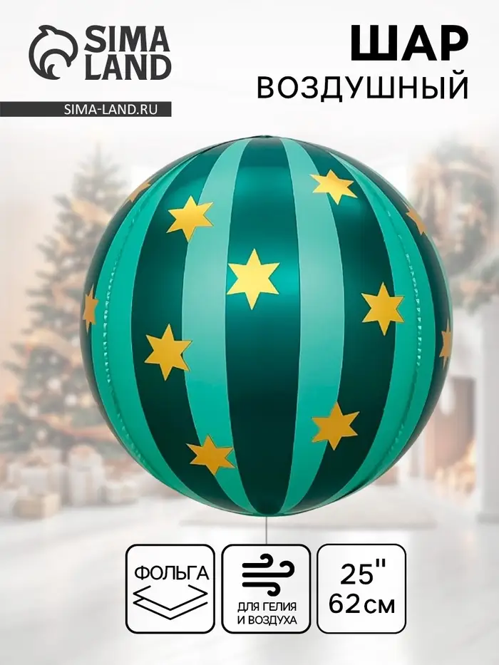 Воздушный шар фольгированный 25" сфера "Новгодний шар" цвет зеленый