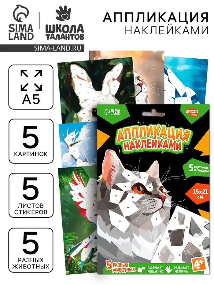 Аппликация наклейками "Животный мир"