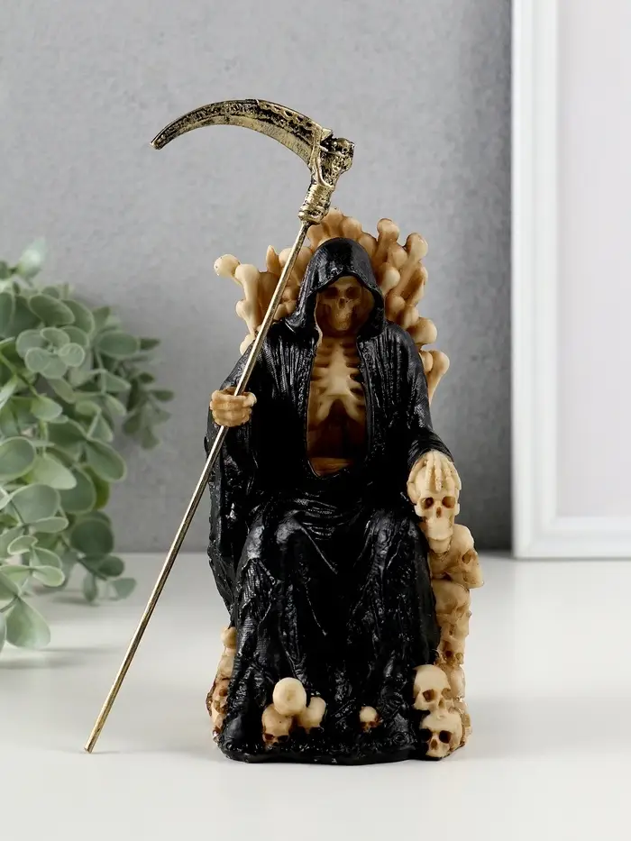 Сувенир полистоун "Скелет на троне с косой" 9х9х16,7 см