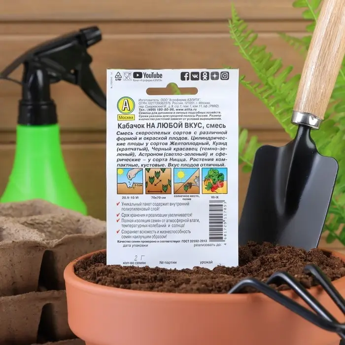 Благодаря внутреннему полиэтиленовому слою пакет не пропускает влагу и увеличивает срок годности семян до 2-ух лет.