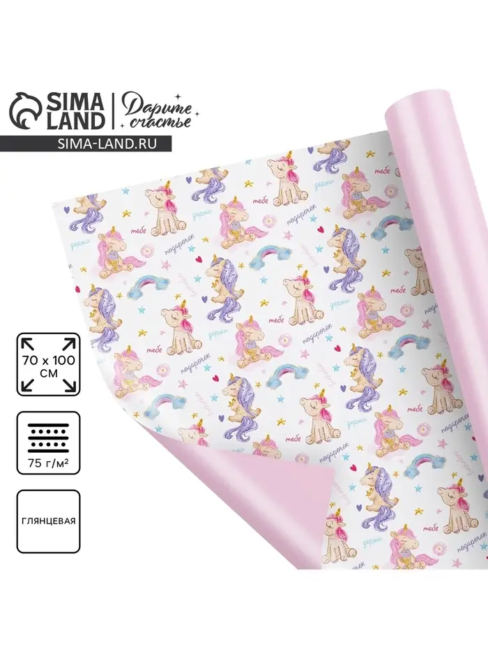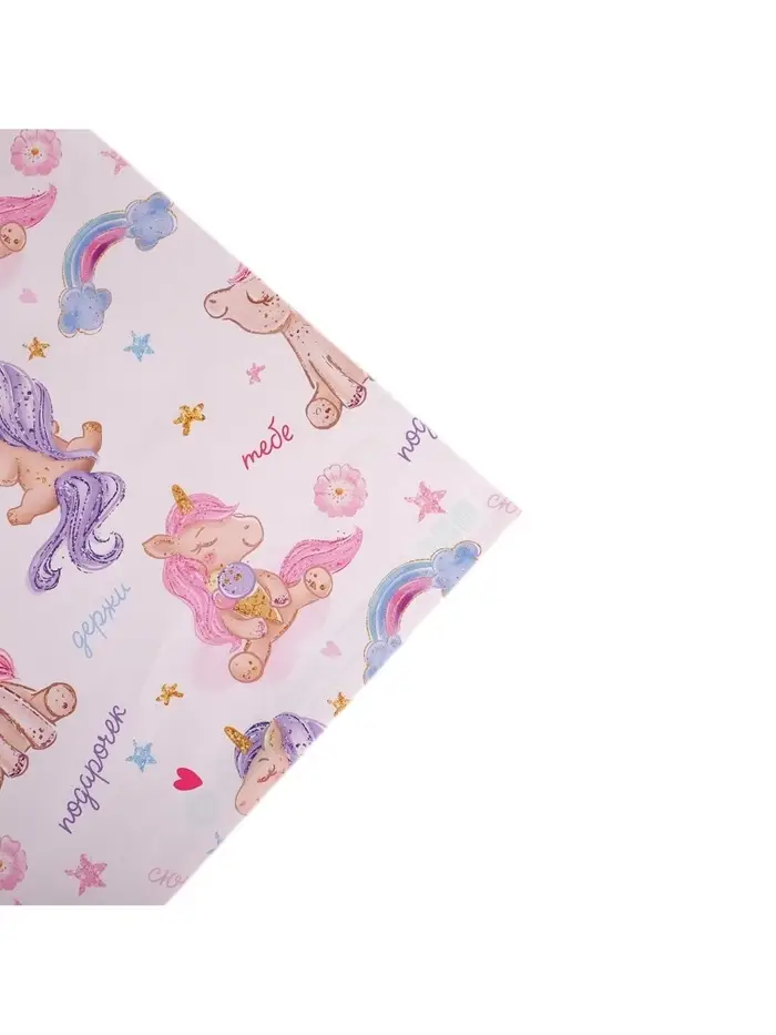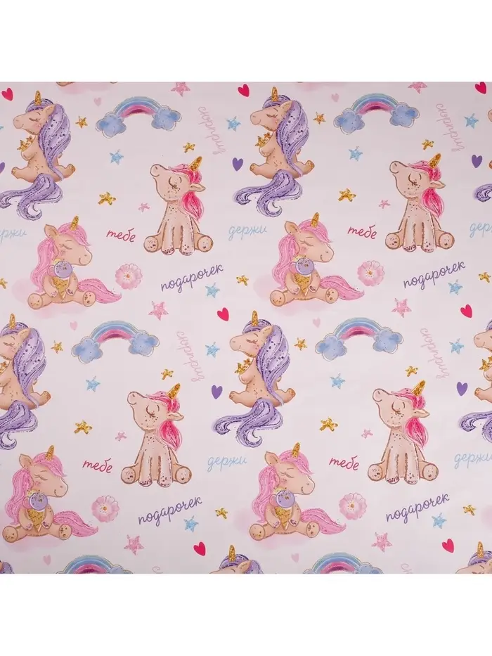 Бумага упаковочная глянцевая двухсторонняя «Единорожки», 70 х 100 см