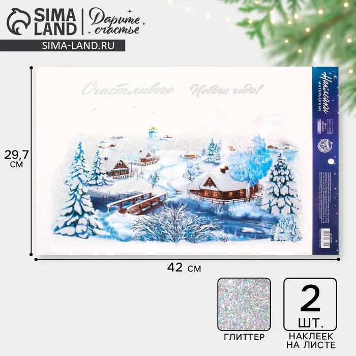 Наклейки новогодние «Счастливого нового года», с блестящей пластизолью, 29,7 х 42 см