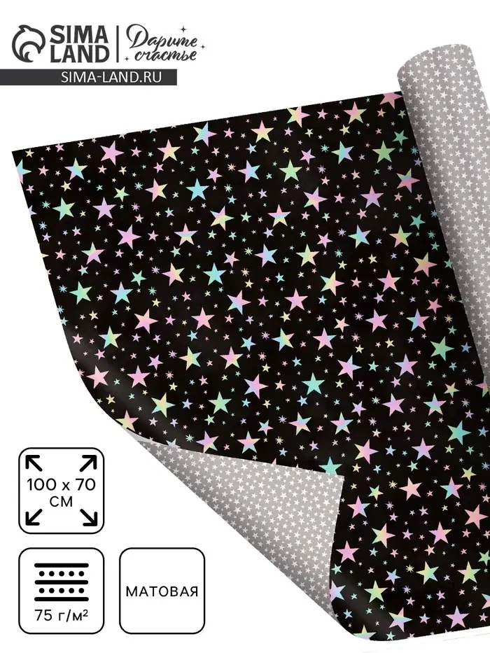 Бумага упаковочная глянцевая двухсторонняя «Звезды», 70 х 100 см