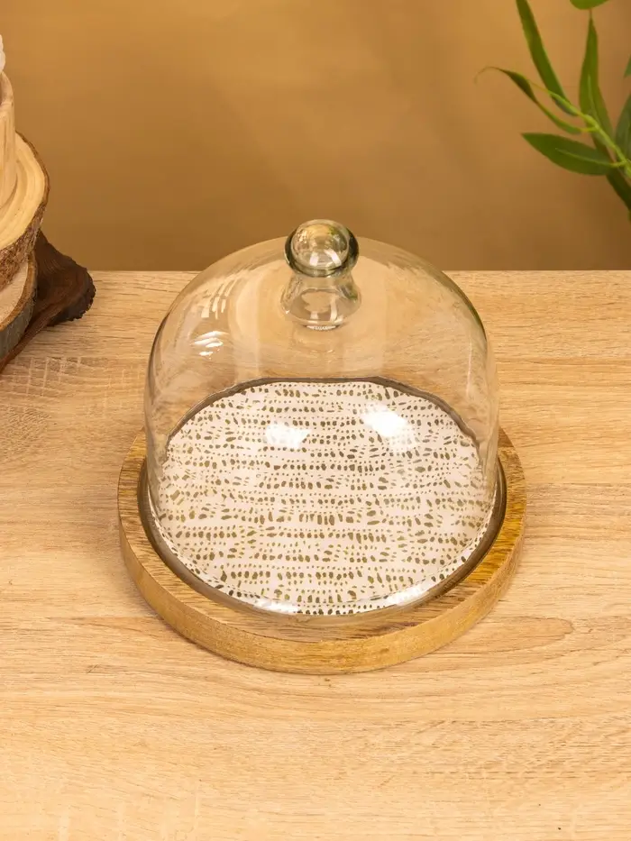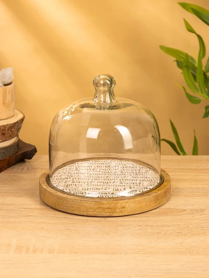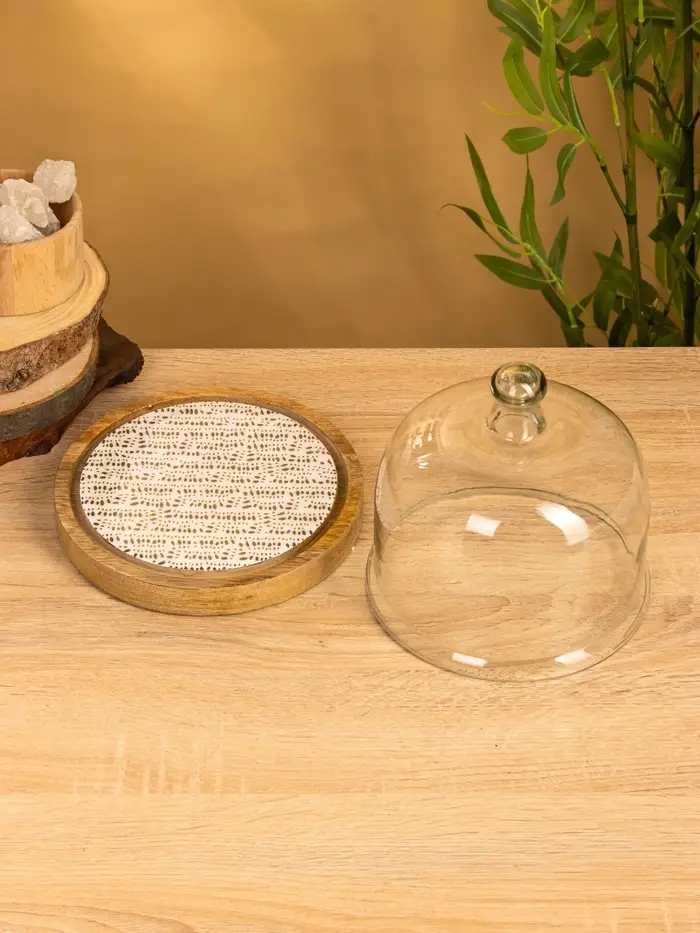 Блюдо сервировочное с крышкой, 20×20×19.5 см, дерево, стекло