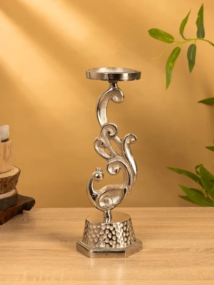 Подсвечник "Жар-птица" 11х11х30 см, алюминий, цв. серебро