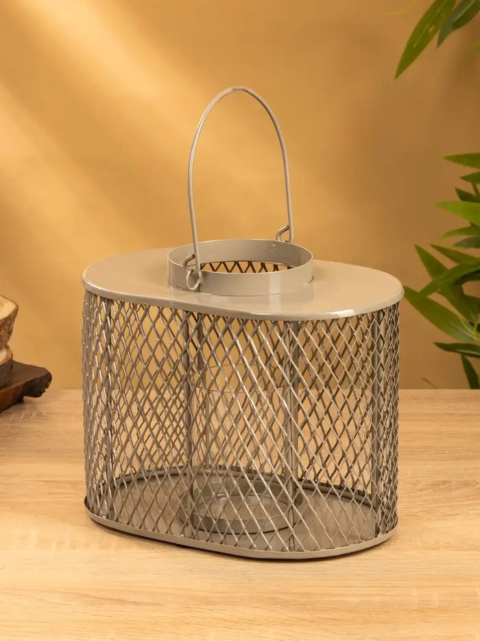 Подсвечник фонарь со стеклянной колбой 19,5х23х15,5 см, d 10 см, металл, цв. серый