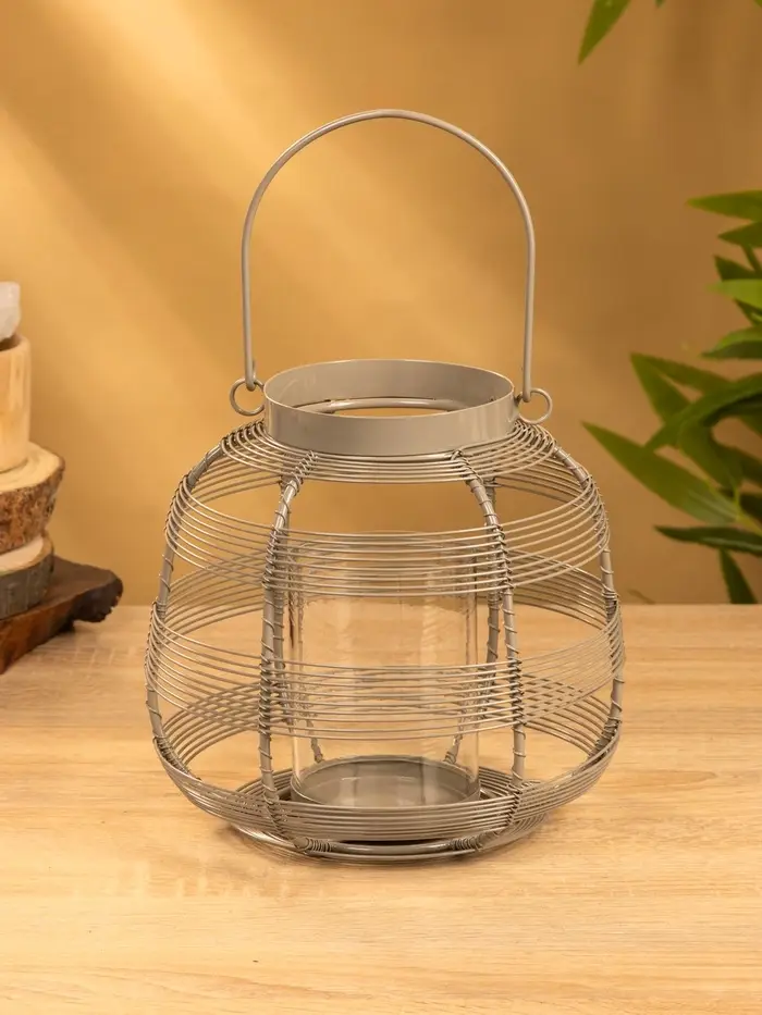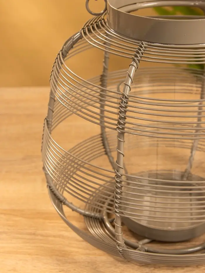 Подсвечник фонарь со стеклянной колбой 19х19х18 см, d 7,5 см, металл, цв. серый