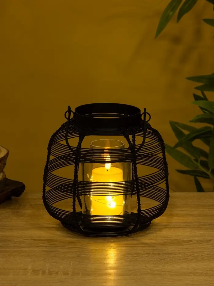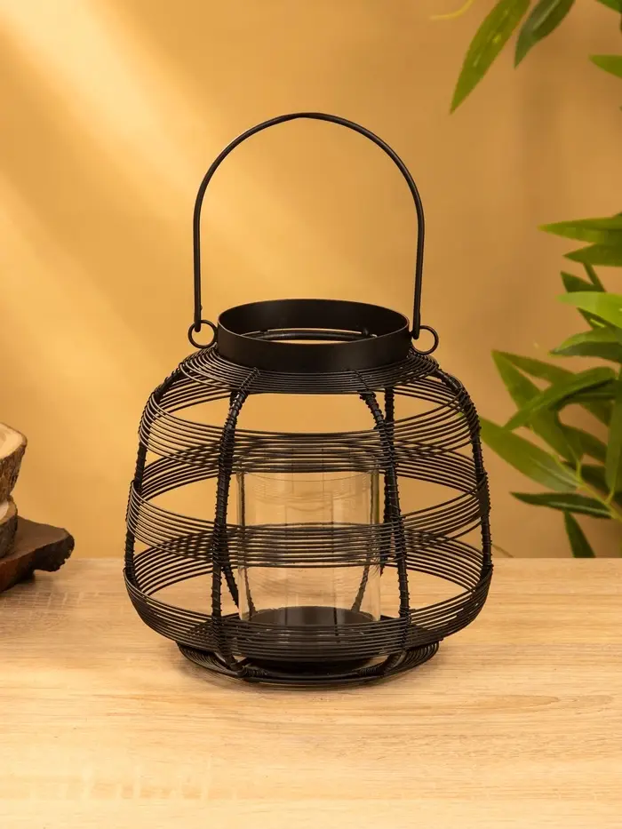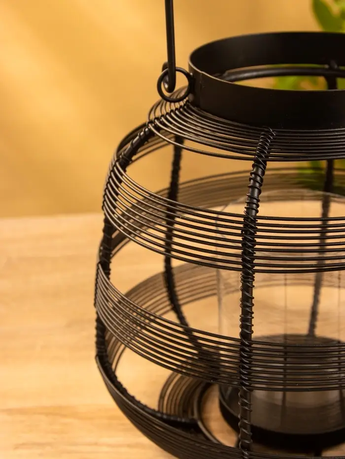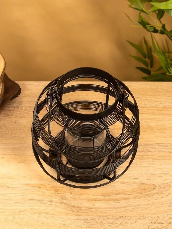 Подсвечник фонарь со стеклянной колбой, 19×19×18 см, d=9 см, металл, чёрный