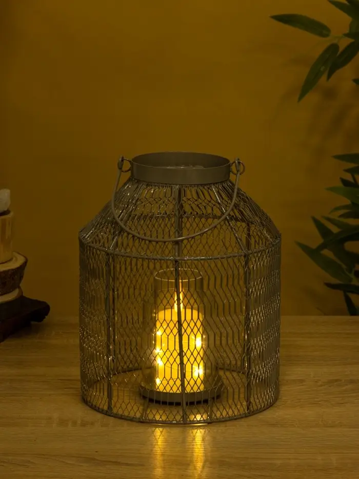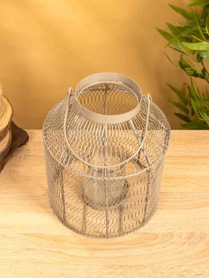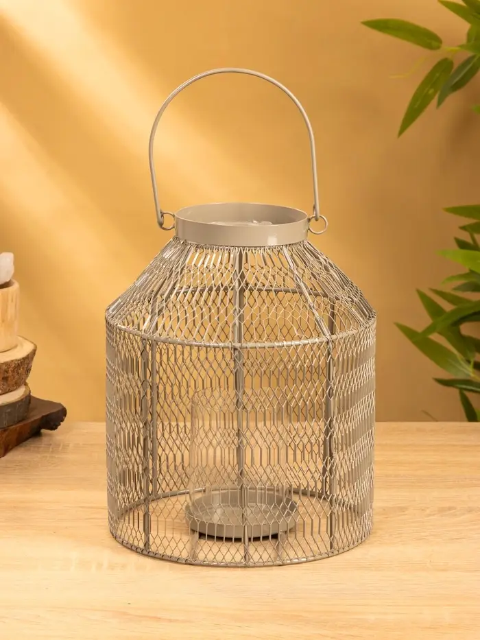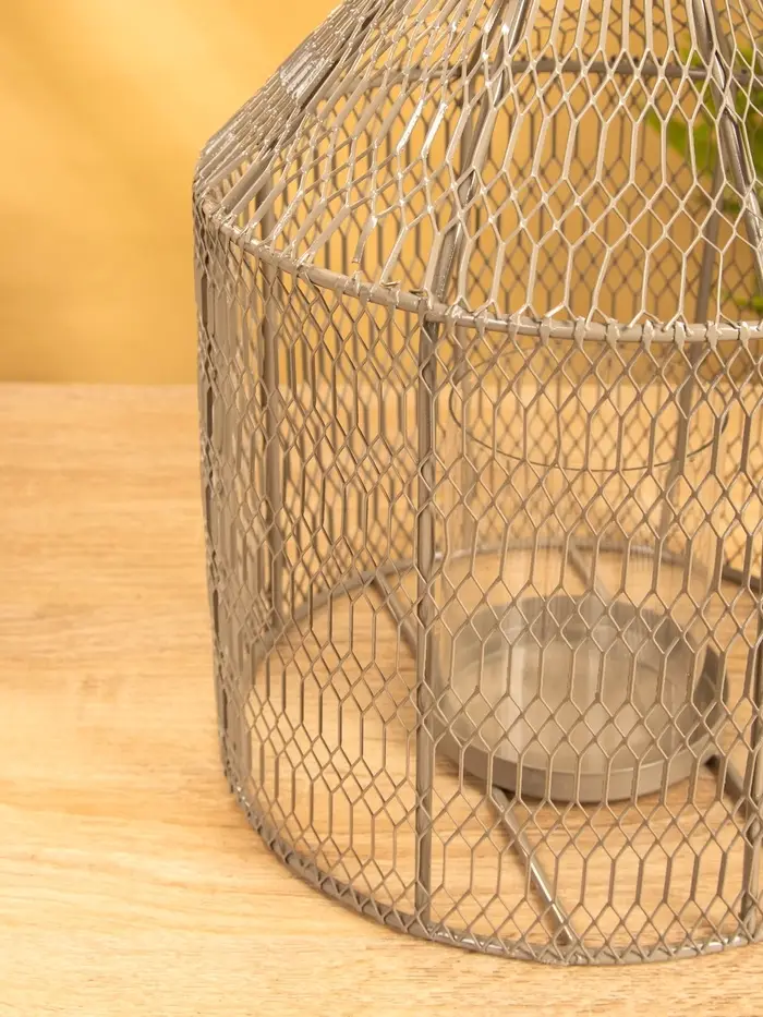 Подсвечник фонарь со стеклянной колбой 20х20х26 см, d 9 см, металл, цв. серый