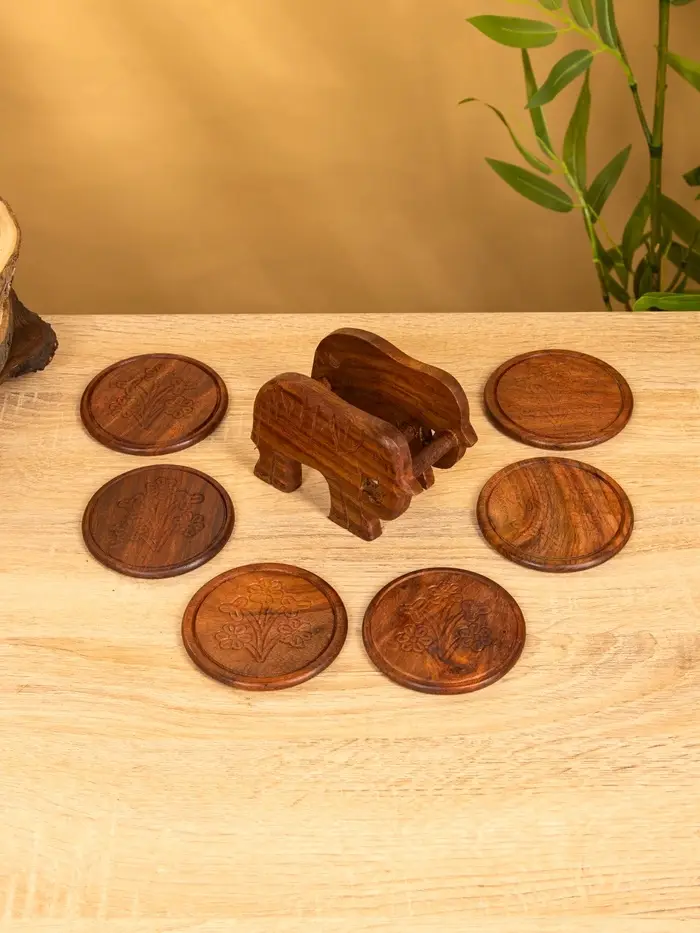 Подставка под горячее "Слон" (набор 6 шт), 12х12х6,5 см, дерево шишам