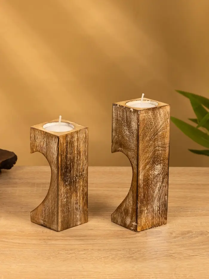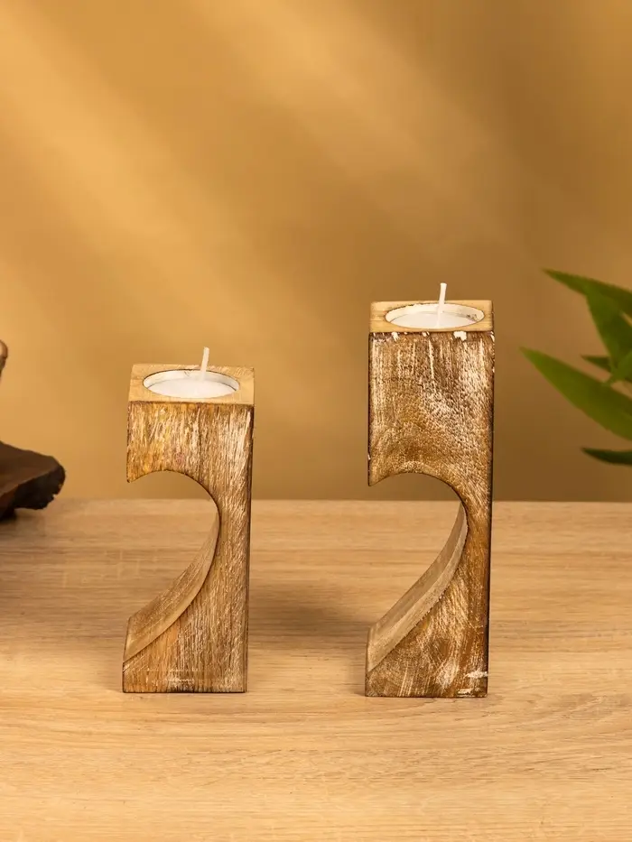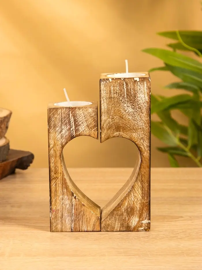 Подсвечник "Сердце" (набор 2 шт), 11х5,5х26 см, дерево шишам