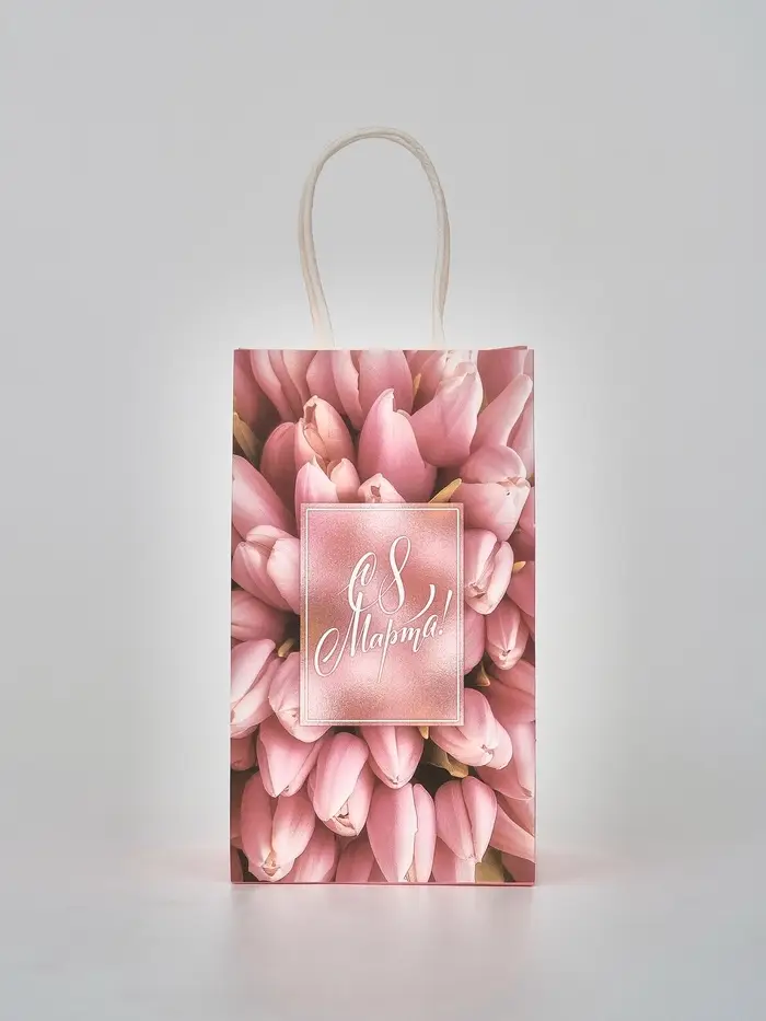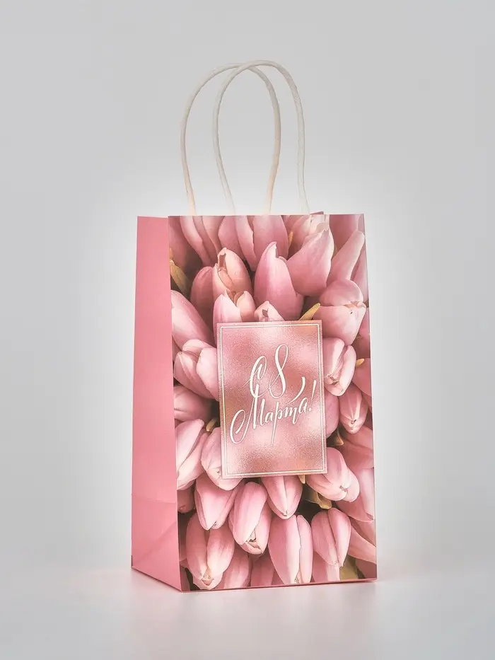 Пакет подарочный крафт «С 8 марта», 12 × 21 × 9 см