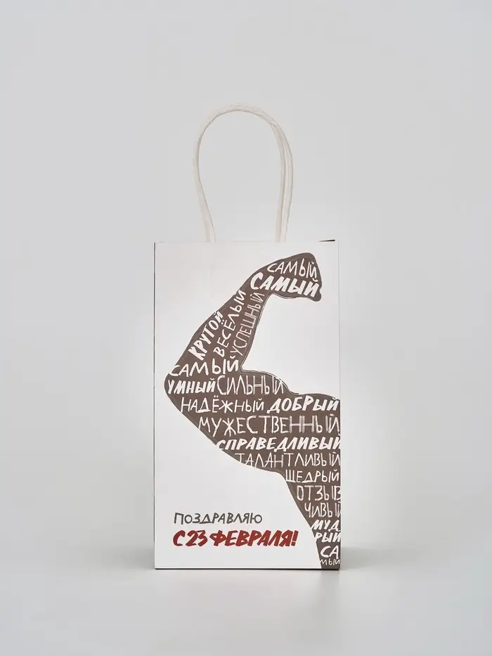 Пакет подарочный крафт «С 23 февраля», 12 × 21 × 9 см