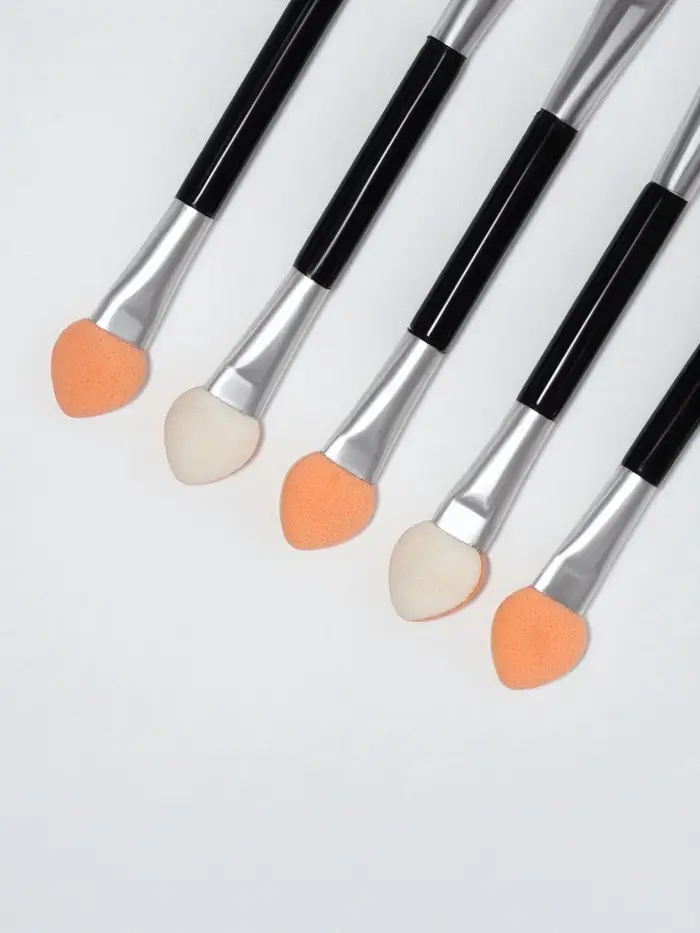 Набор аппликаторов для теней, с кистью, двусторонние, 5 шт, 7,5 см, цвет чёрный/серебристый