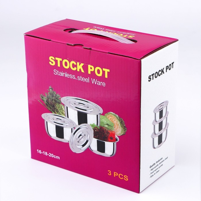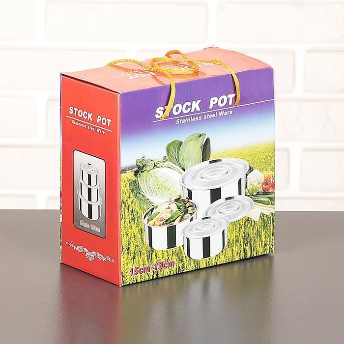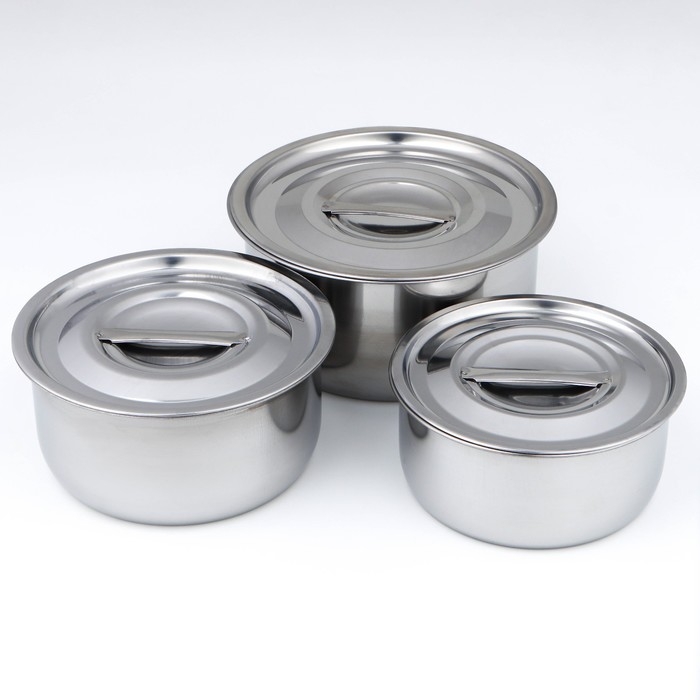 Набор мисок из нержавеющей стали с крышками 3 шт: 0,75 л, 1 л, 1,45 л, d=15 см, d=16,5 см, 18,5 см