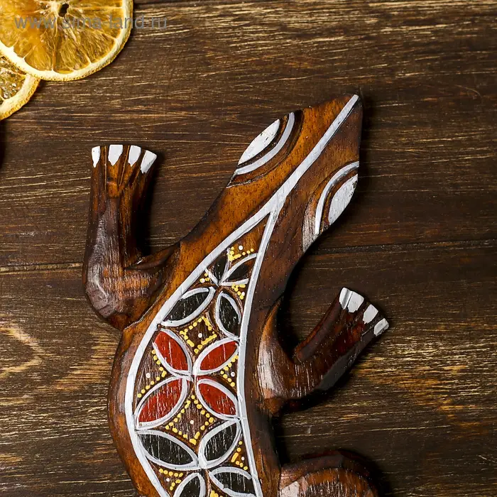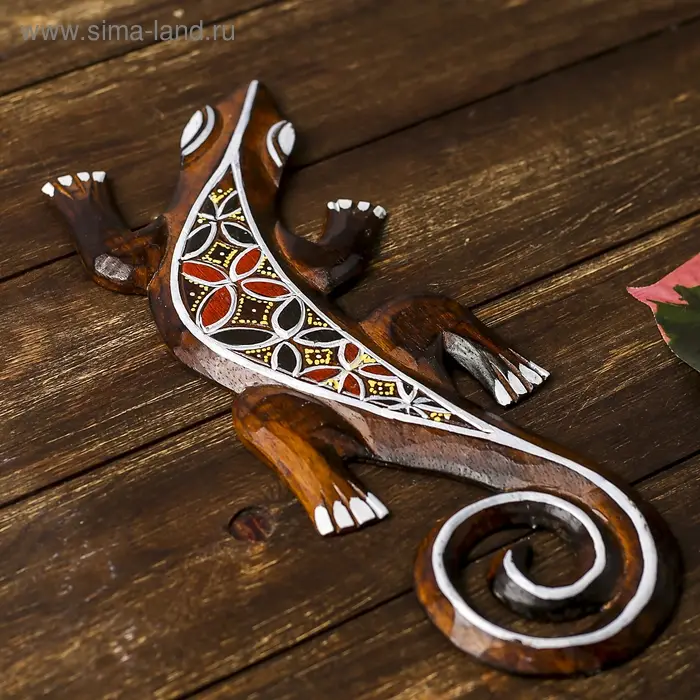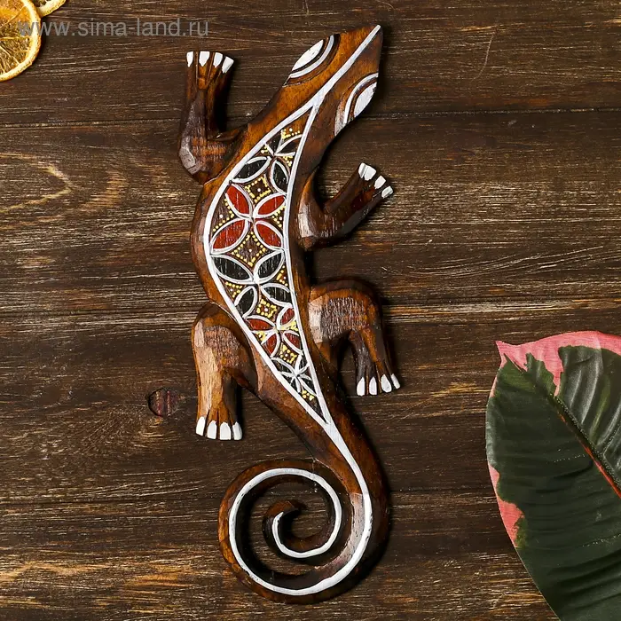 Не каждый осмелится разместить такое панно ручной работы в своем интерьере. Ведь порой кажется, что это настоящая живая рептилия. Искусные индонезийские мастера изобразили всё настолько детализировано четко, что хочется прикоснуться к панно дерево "Геккон" 31х11х1 см и ощутить тонкие линии изгибов этой «ящерицы счастья».