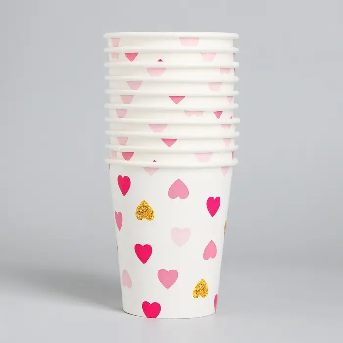 Стакан одноразовый бумажный "Сердца", 250 мл