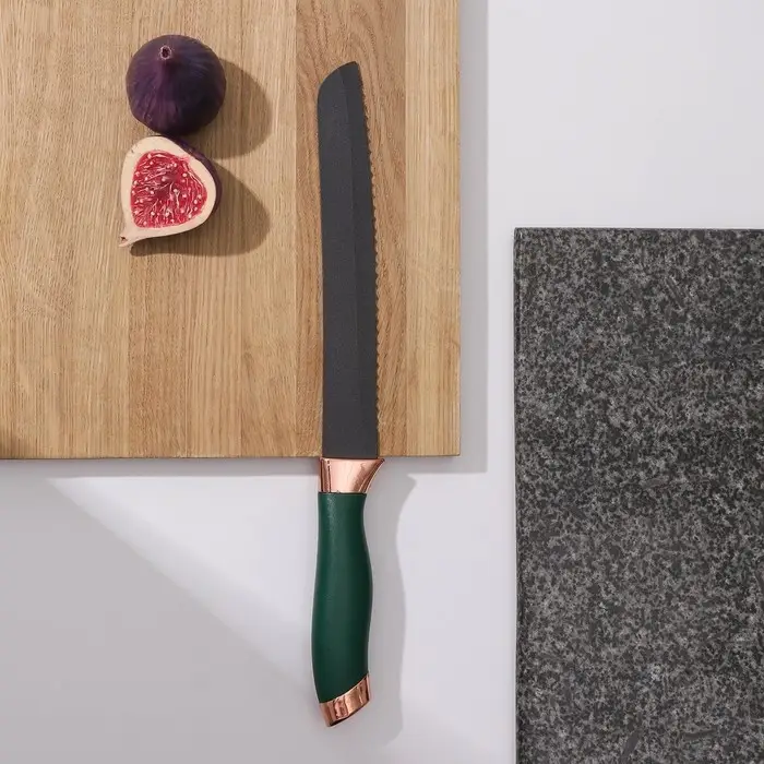 Нож хлебный Доляна «Эсмиральда», хлебный, лезвие 19,5 см, цвет зелёный