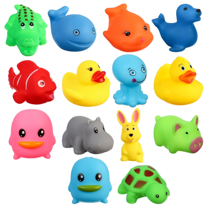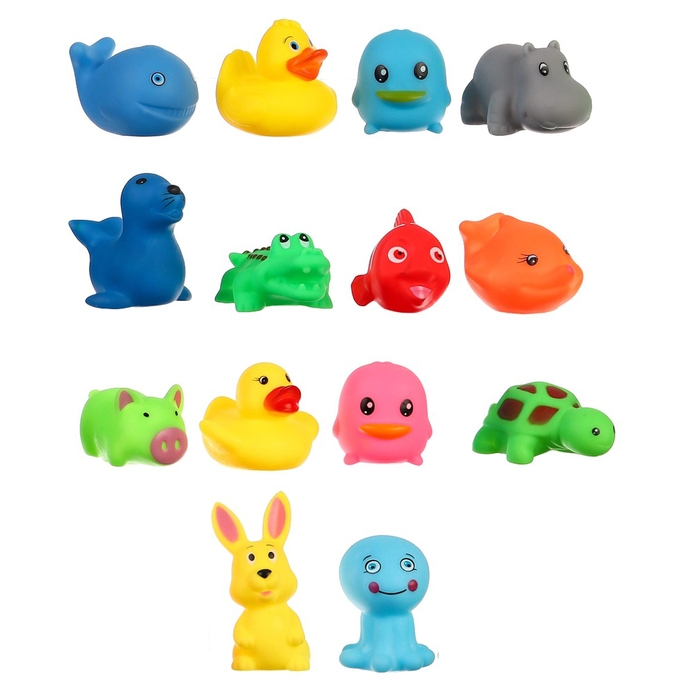 Набор резиновых игрушек для ванны «Малыши», с пищалкой, 14 шт, Крошка Я