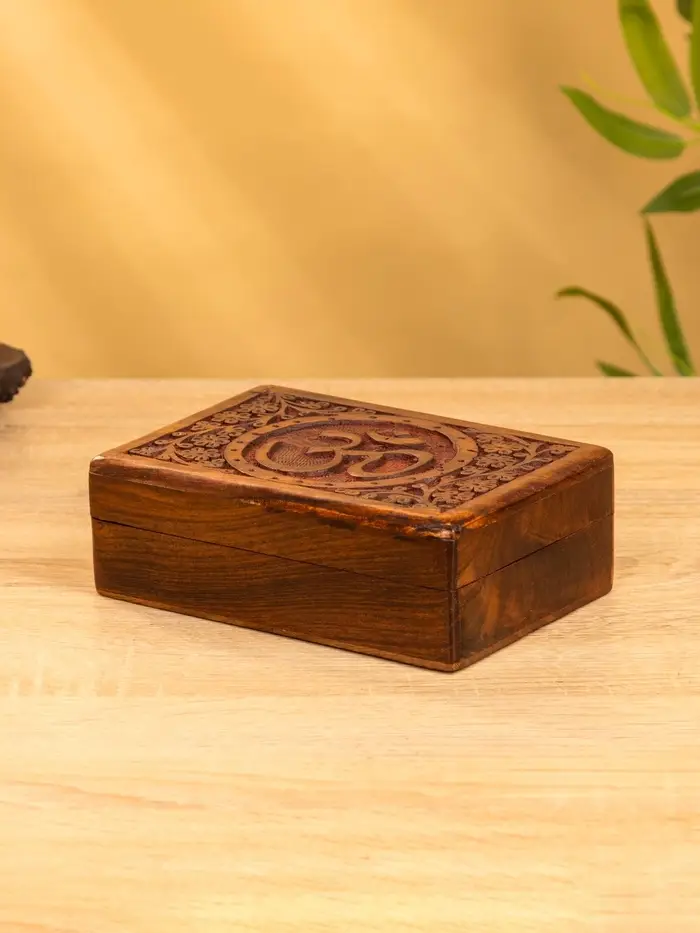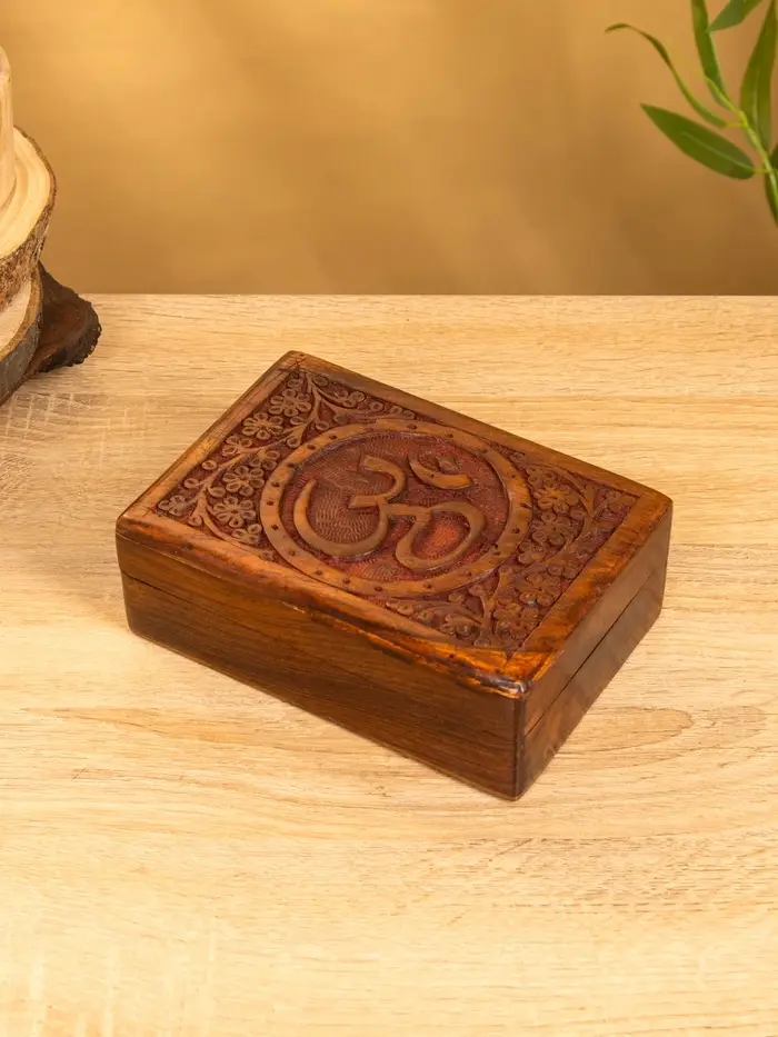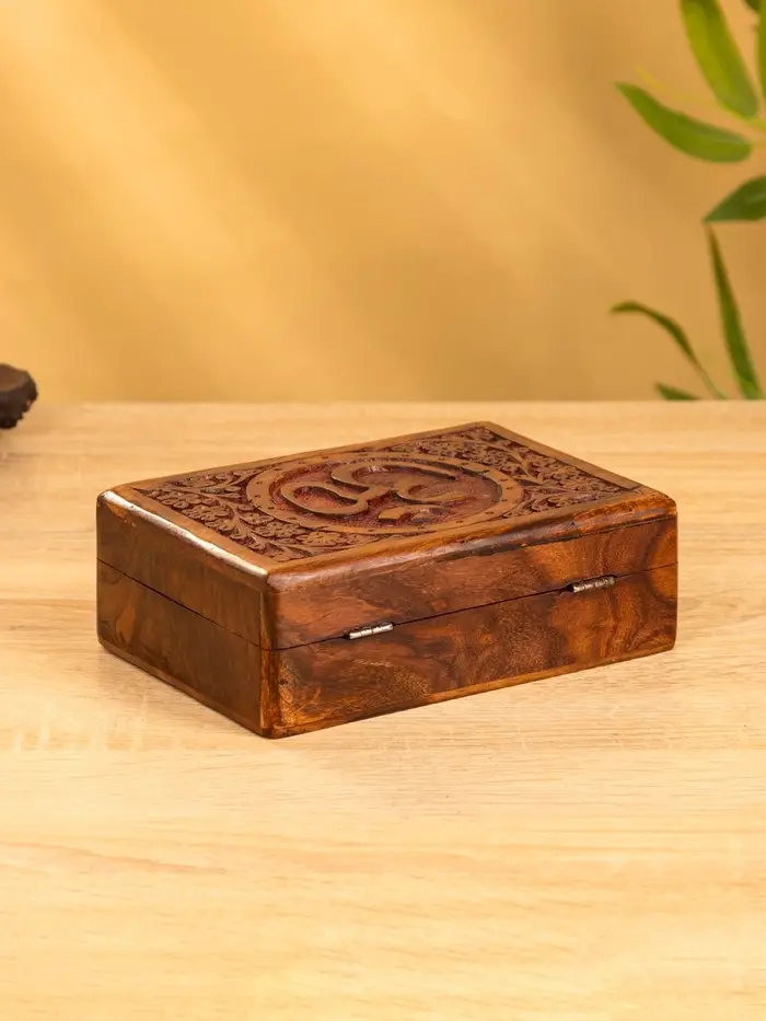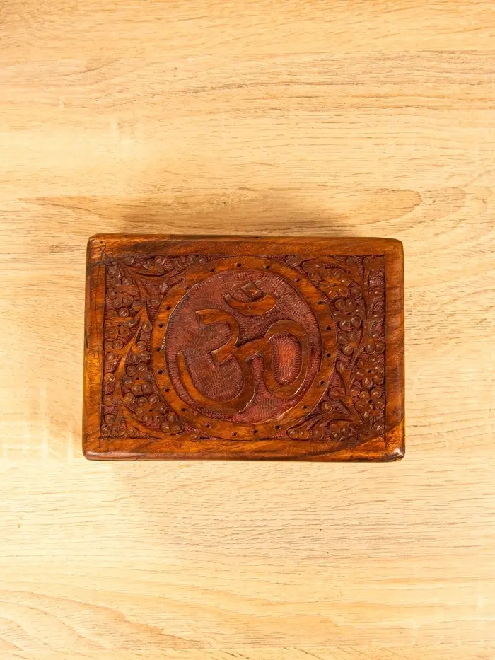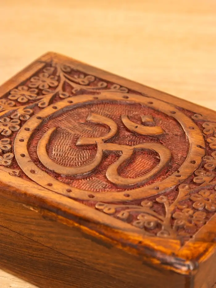 Шкатулка резная "Ом" 18х13х6 см, дерево шишам