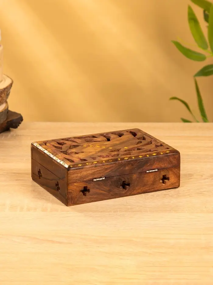 Шкатулка резная "Хранитель" 18х13х6 см, дерево шишам