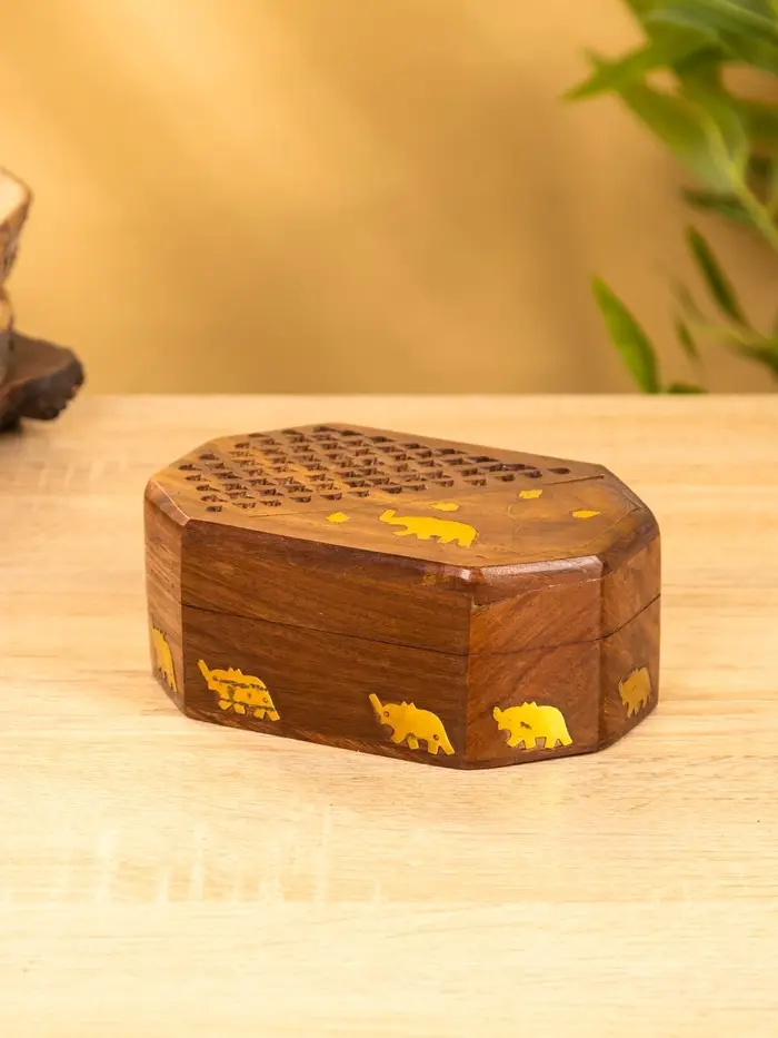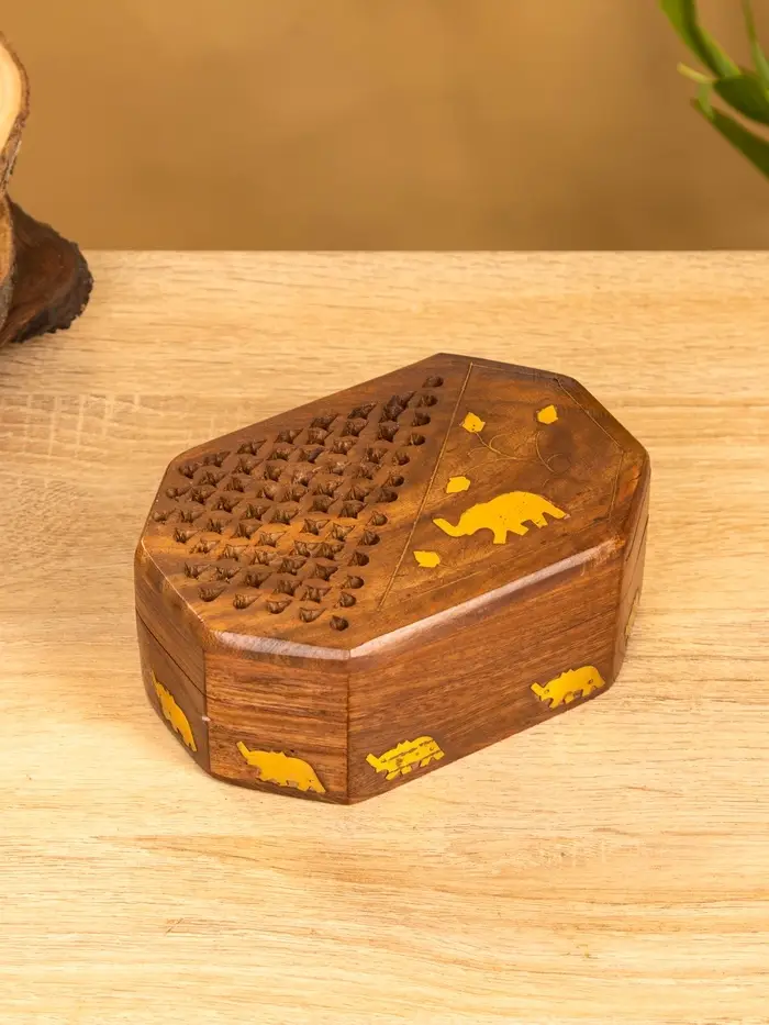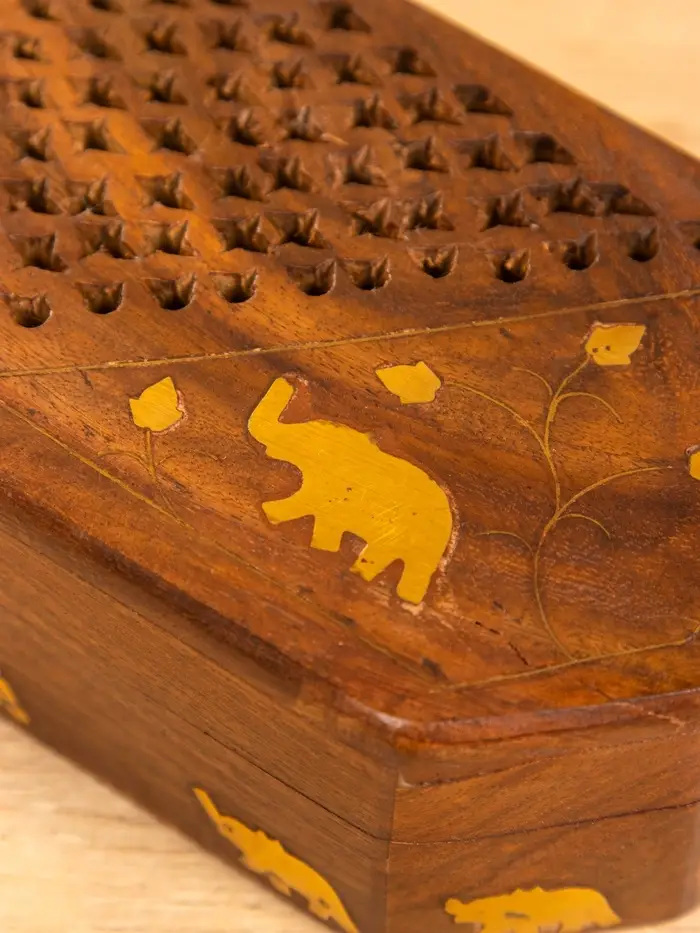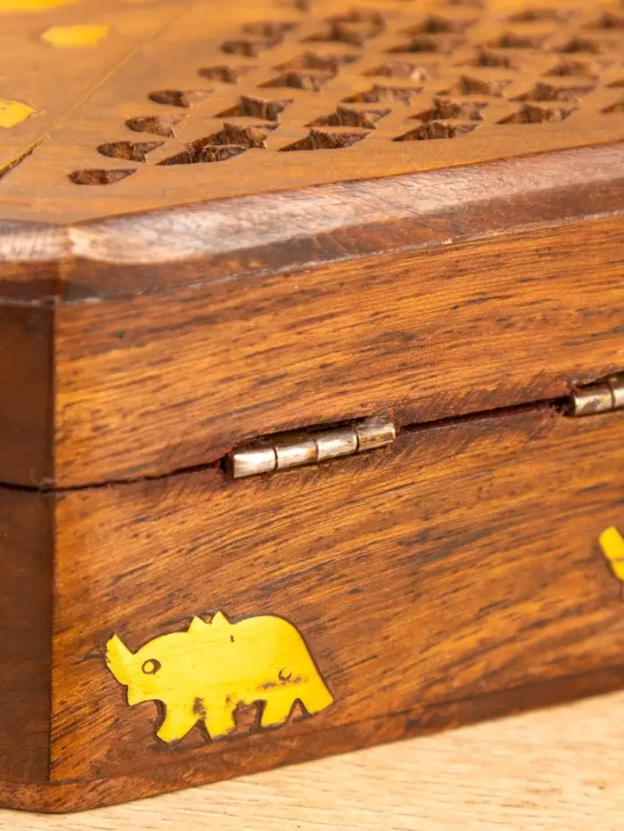 Шкатулка резная "Слоник в саду" 15х10х5 см, дерево шишам