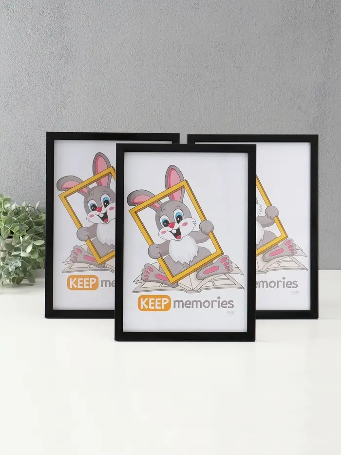 Фоторамка "Формат" 21х30 см, с подножкой, набор 3 шт, (пластиковый экран), чёрный