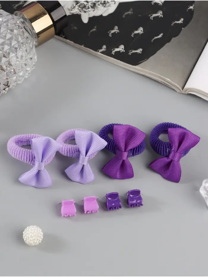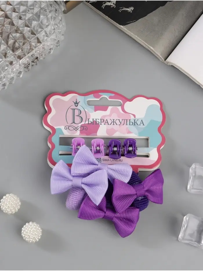 Набор для волос «Фиалка»: 4 краба, 4 резинки, бантик, розово-фиолетовый