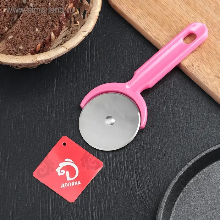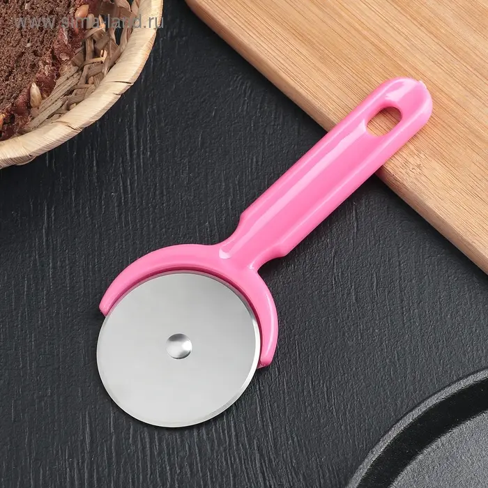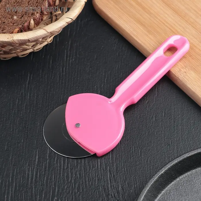 Нож для пиццы — универсальный кухонный инструмент, который не только легко разрезает готовую выпечку, но и помогает поделить на слайсы липкое тесто. Нож имеет эргономичную форму ручки и острое круглое лезвие. Колесо, прикреплённое к рукояти, продавливает продукт, а не разрезает его в отличие от классического ножа. Благодаря такому способу тесто разрезается, а начинка остается на месте.