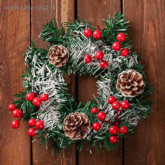 Венок новогодний d-22 см "Шишки с ягодками на зелёном"
