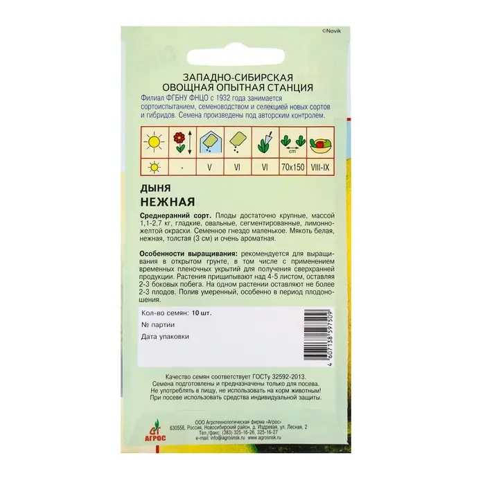 Семена для выращивания дыни «Нежная» — это ваш верный спутник в создании вкусных и сочных плодов. Этот универсальный сорт дынь подходит как для открытого грунта, так и для парников. Срок созревания средний, что даёт возможность удобно спланировать сезон с минимальными усилиями.