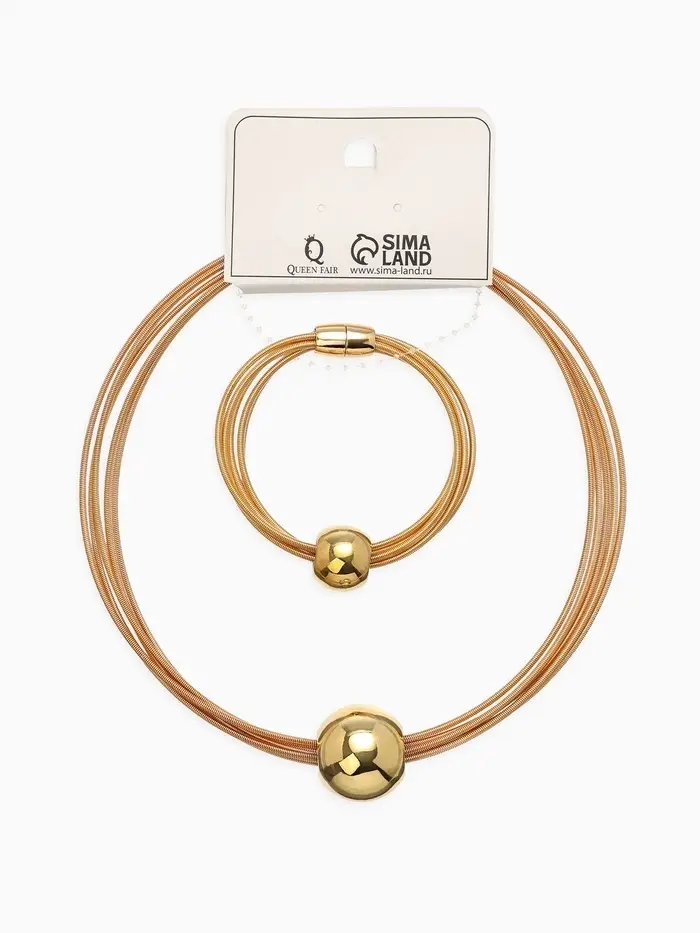 Набор 2 пред-та: колье, браслет "Бусина на нитях", цвет золото