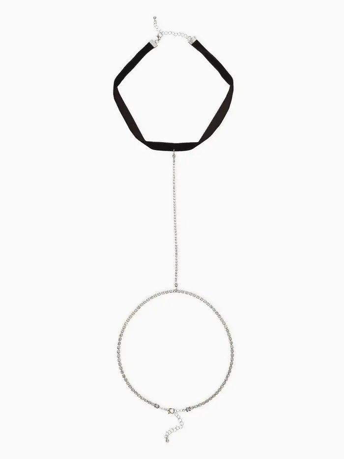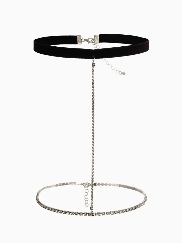 Цепочка на бедро бодичейн со стразами, цвет белый в серебре