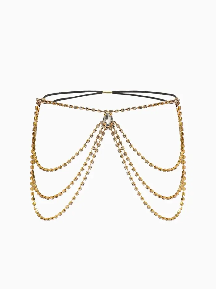 Цепочка на бедро бодичейн "Шахерезада" со стразами, цвет белый в золоте