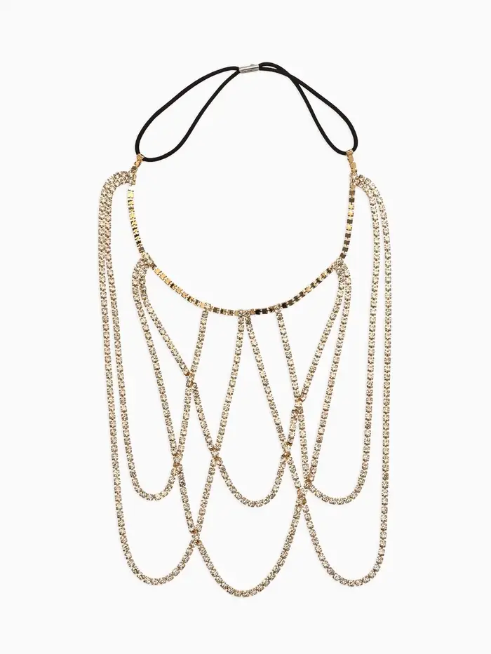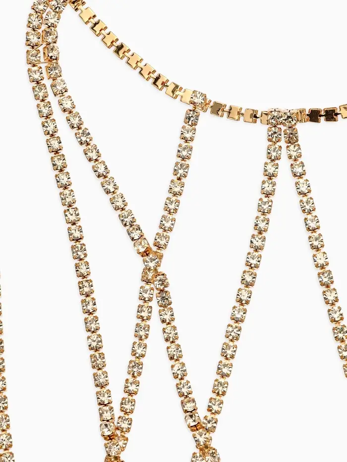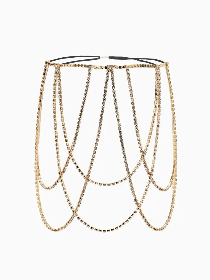 Цепочка на бедро бодичейн "Ярусы" со стразами, цвет белый в золоте