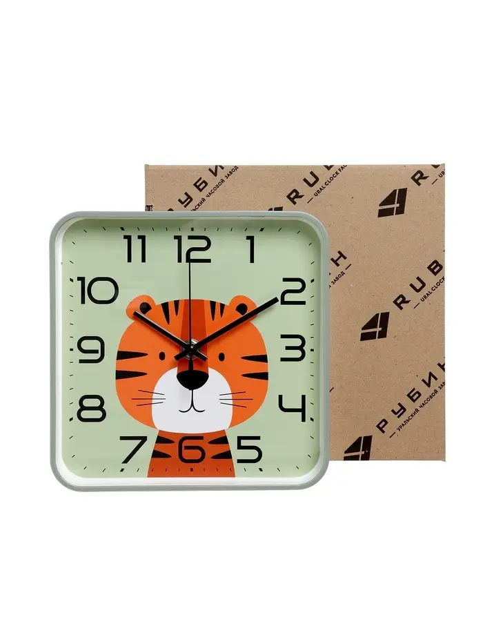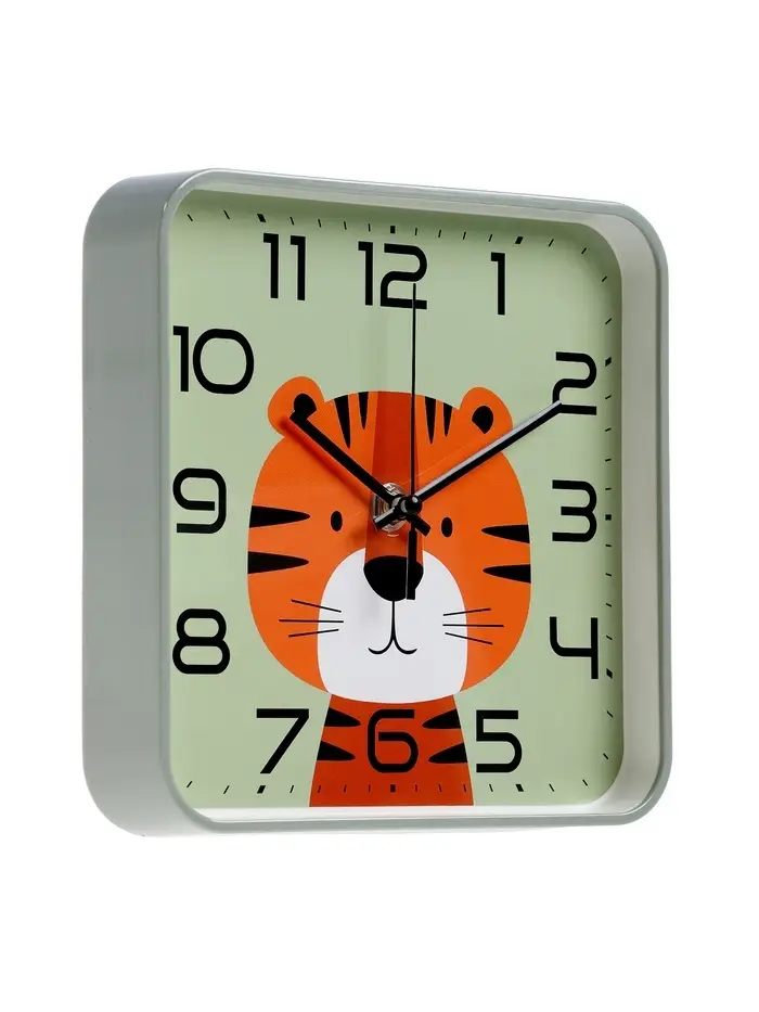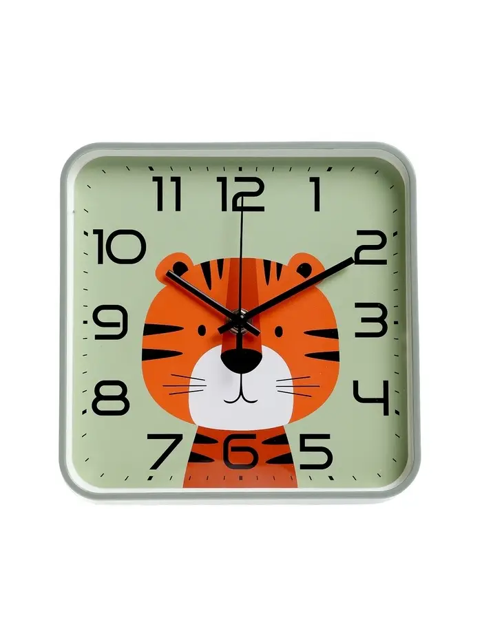 Часы настенные "Тигренок", детские, плавный ход, 19х19см, зеленые