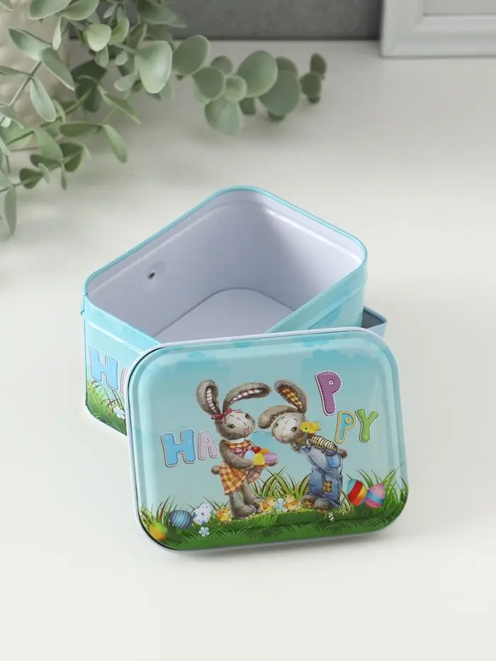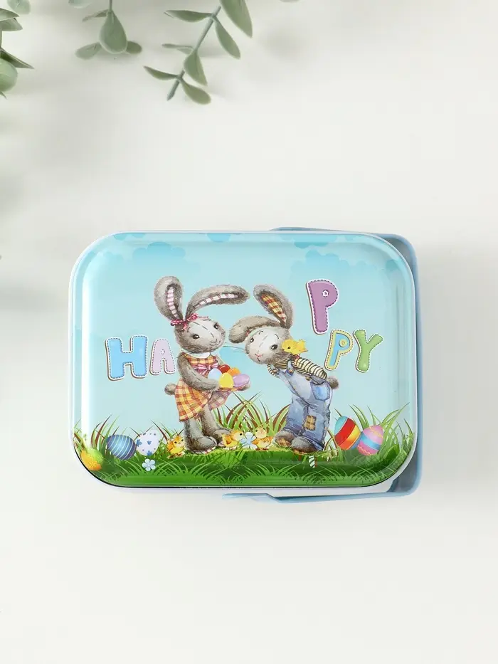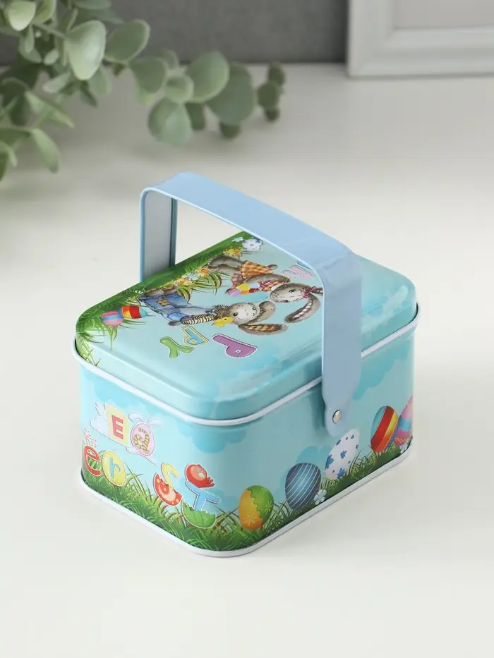 Шкатулка металл с ручкой "Крольчата с яичками" 6х10,5х8 см