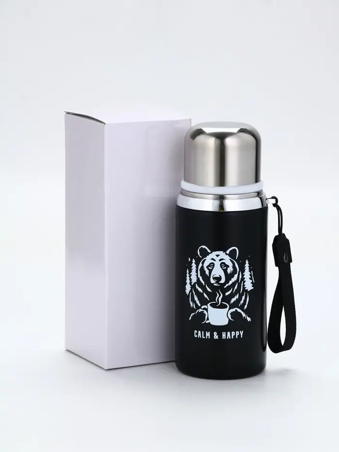 Термос "Calm and happy", чёрный, 600мл