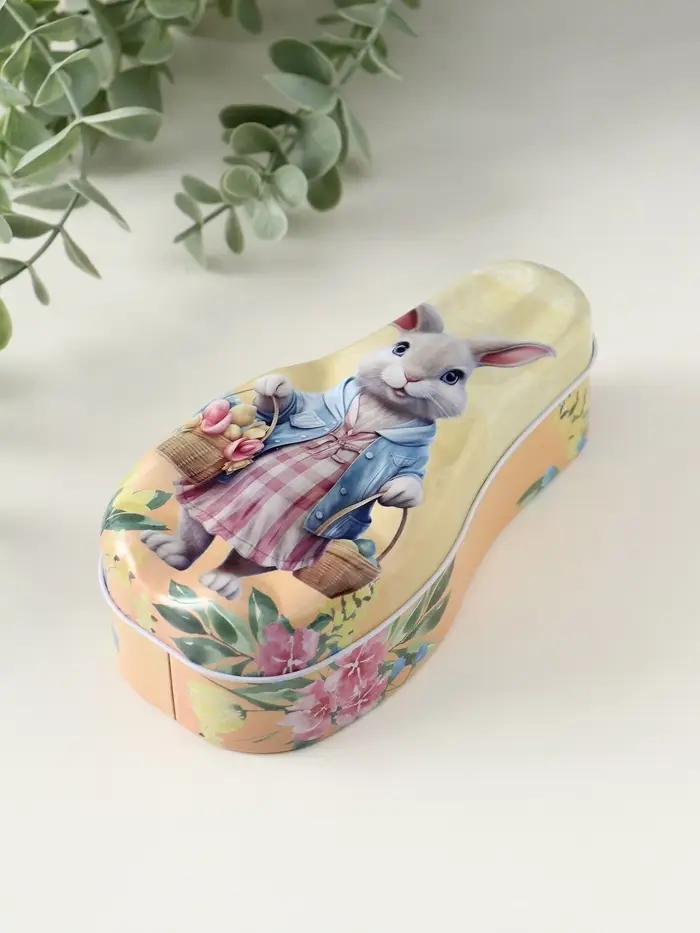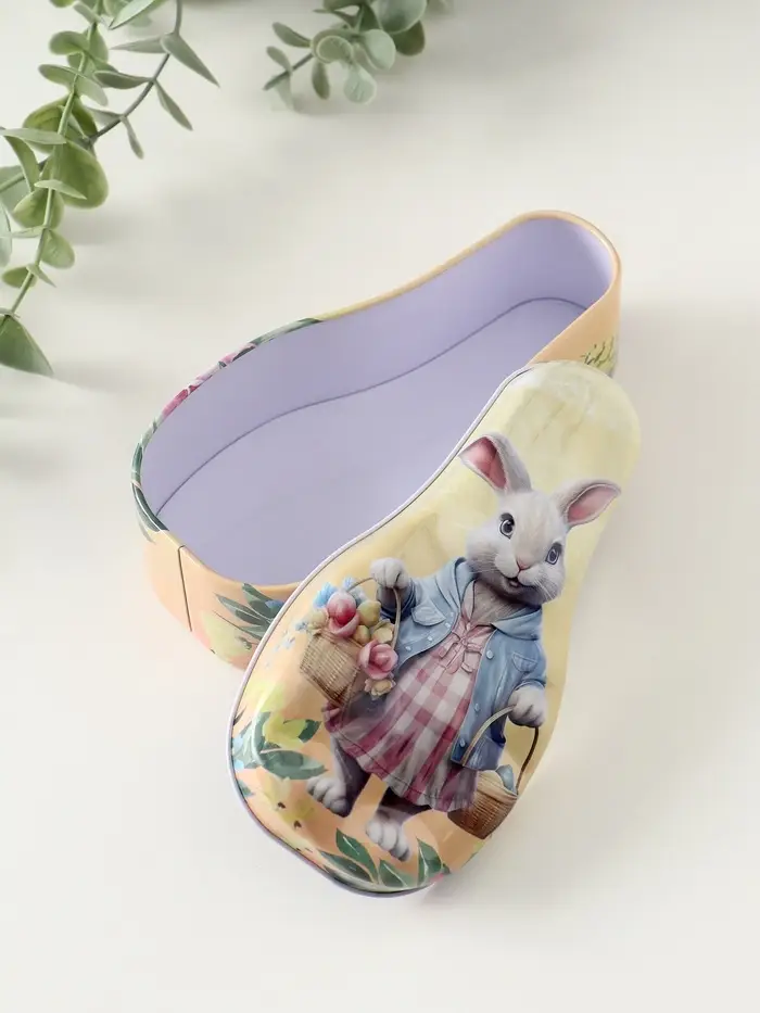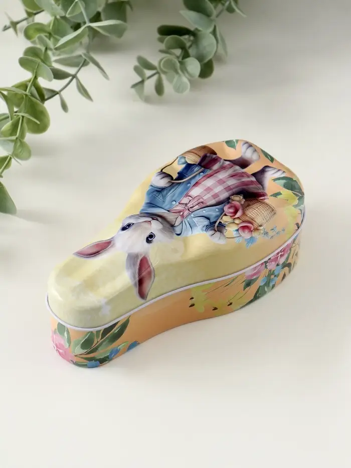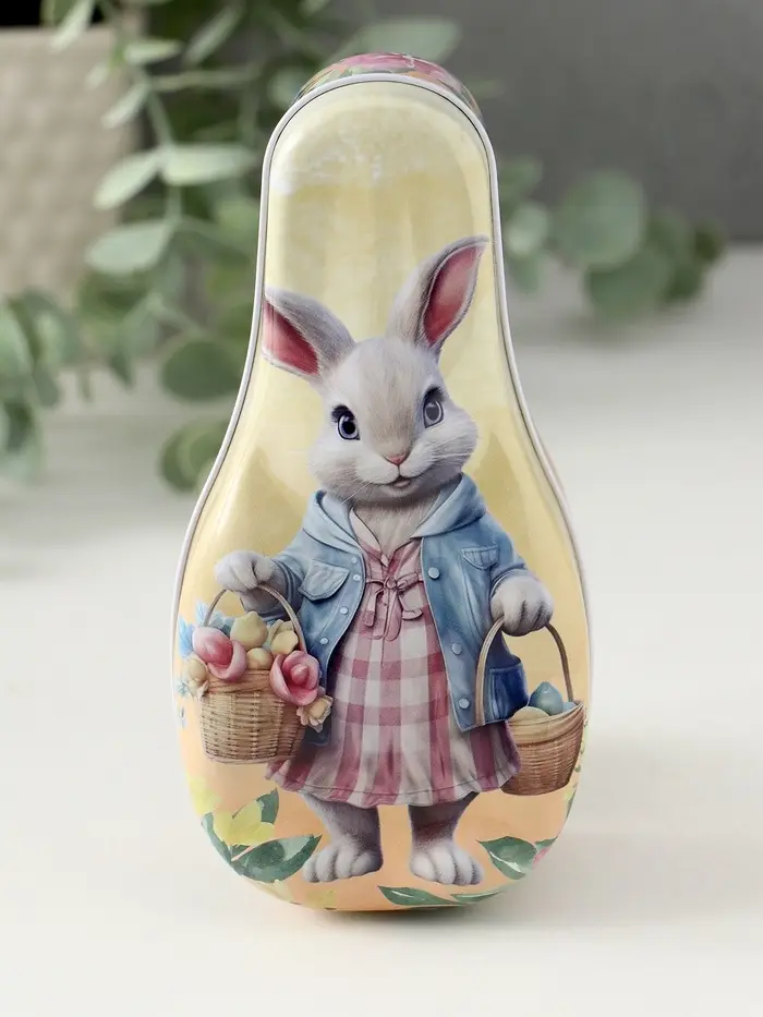 Шкатулка металл "Зайка с корзинками с цветами и яичками" 4,6х7х14,3 см