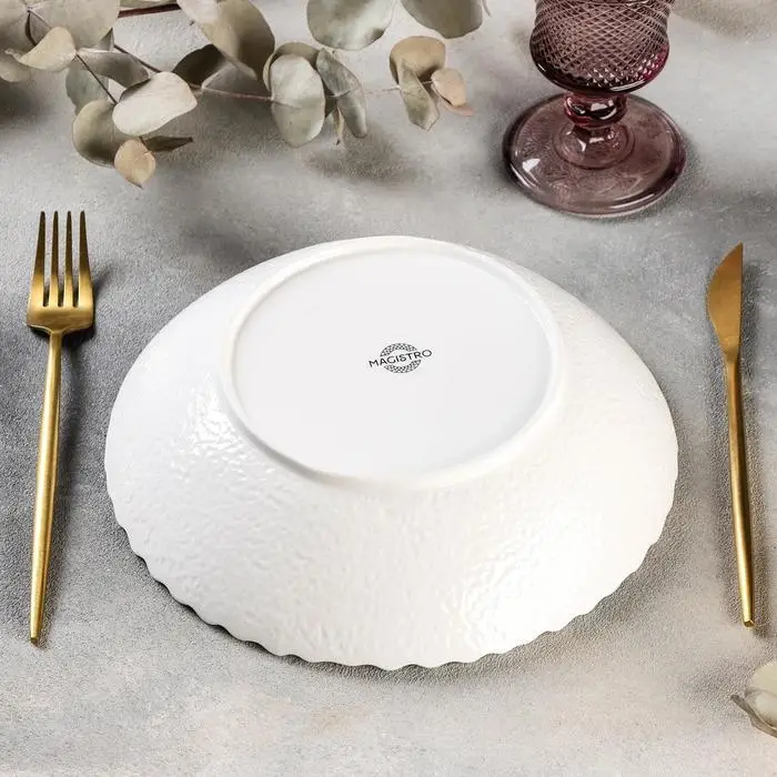 Салатник фарфоровый Magistro «Цветок Бланш», d=23 см, цвет белый