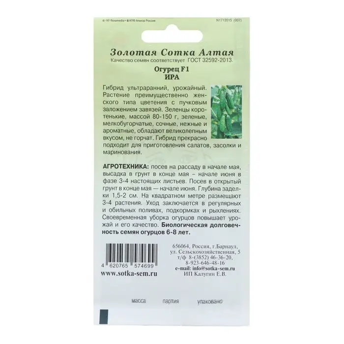 Семена Огурец "Ира F1", ультраранний, 0,3 г