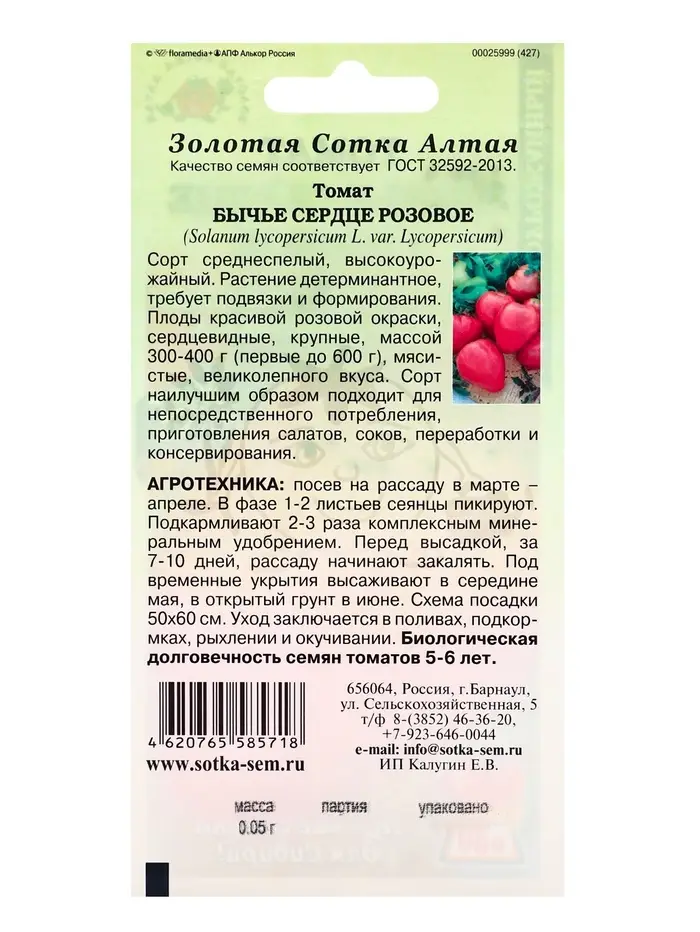 Семена Томат «Бычье сердце Розовое», среднеспелый, 0.05 г