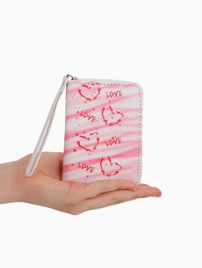 Кошелек жен 07-01-01 Июнь2528 сердце, 12*1,5*9 см, 2 отд+отд/молн, д/карт, розовый