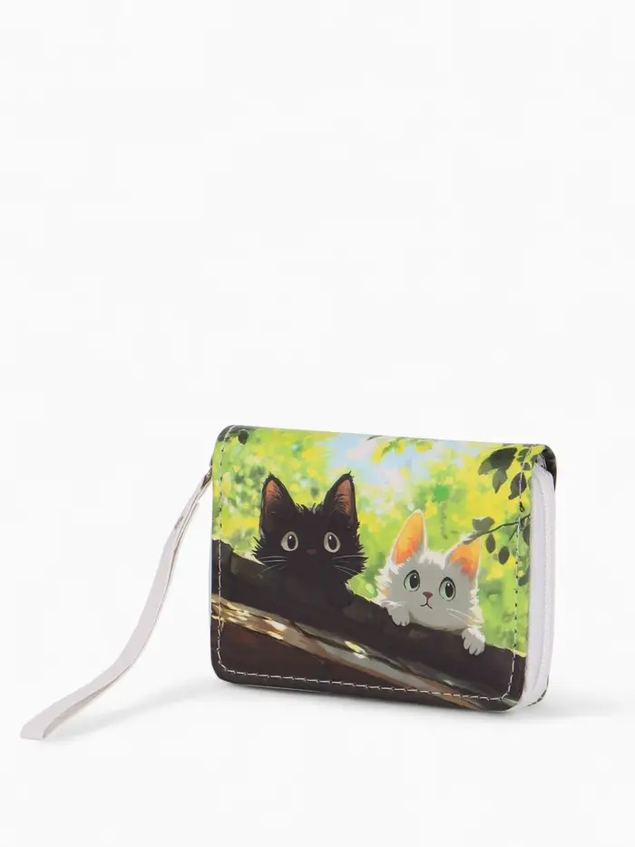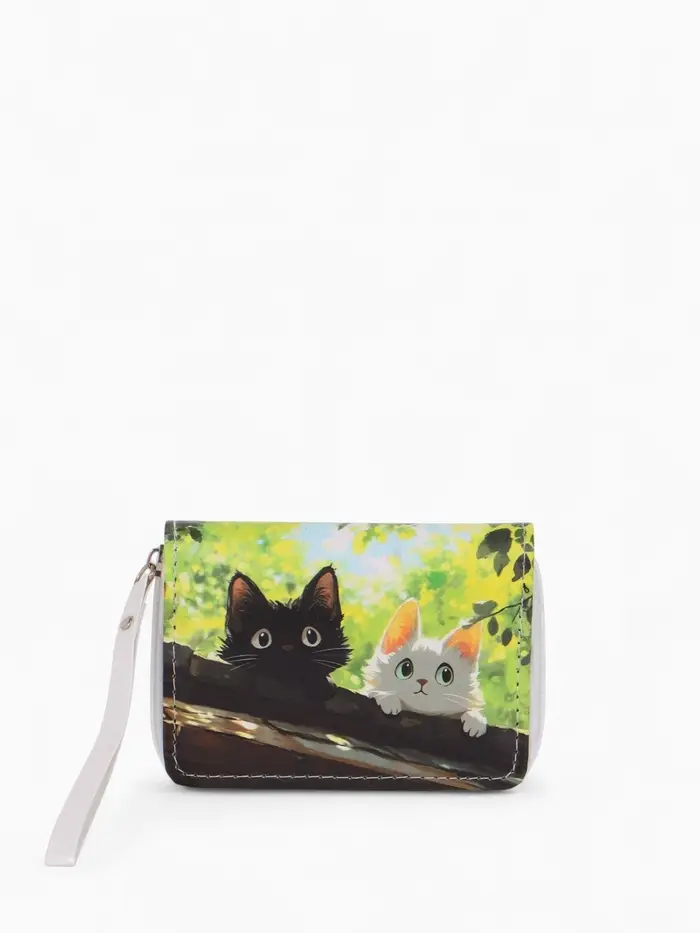 Кошелек дет 07-01-01 Июнь2533 кот, 12*1,5*9 см, 2 отд+отд/молн, д/карт, зеленый