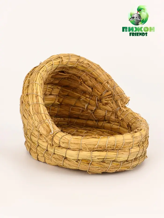 Гнездо для птиц плетёное из соломы, полузакрытое 15 х 10 х 10 см