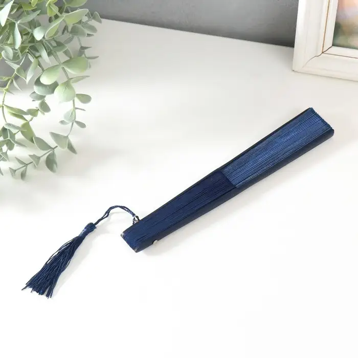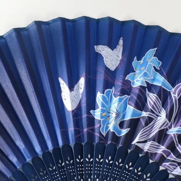 Веер дерево, текстиль h=21 см "Синии лилии и бабочки" синий, с кисточкой