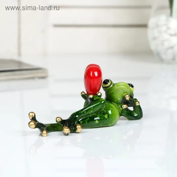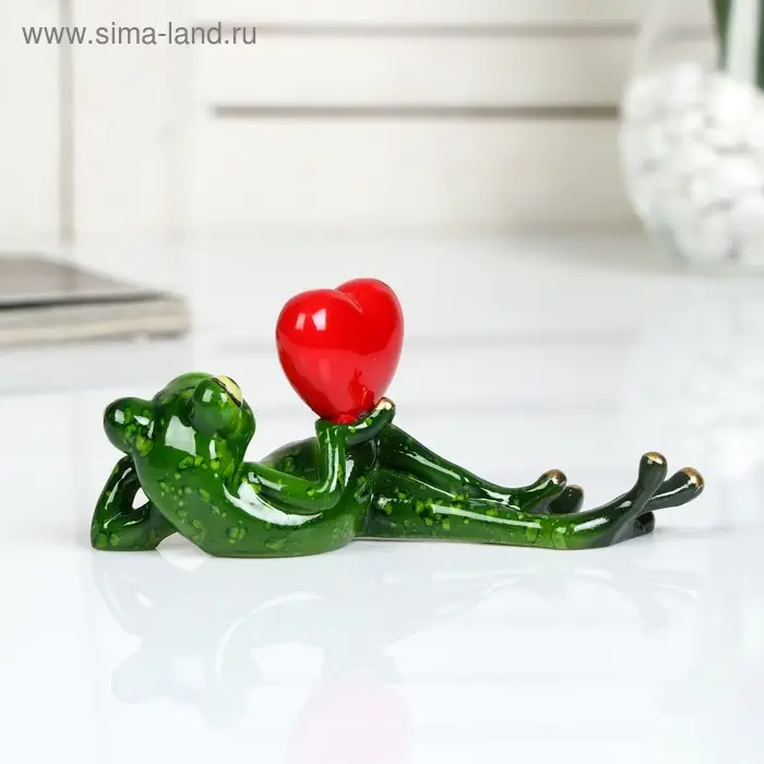 Сувенир полистоун лак "Лягушонок лежит с сердцем в руке" 6х5х15 см
