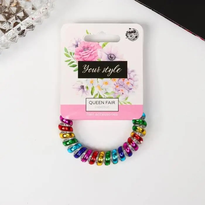 Резинка для волос «Пружинка», яркая радуга, 5 см